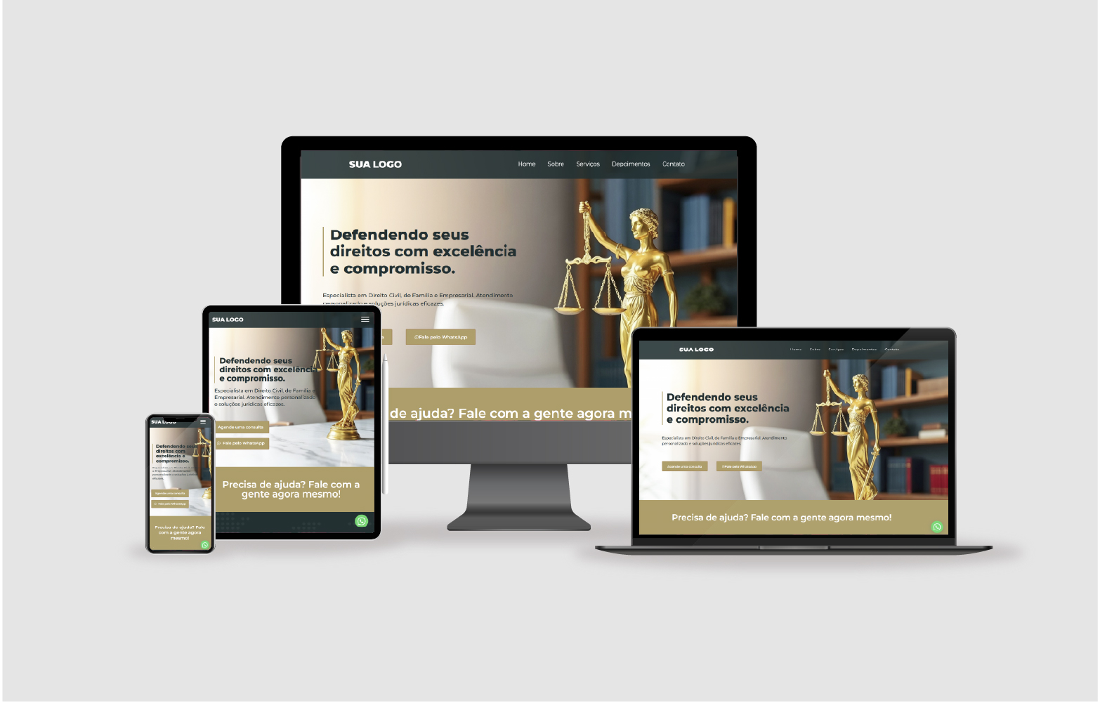 - Design moderno e elegante, focado em credibilidade e confiança
